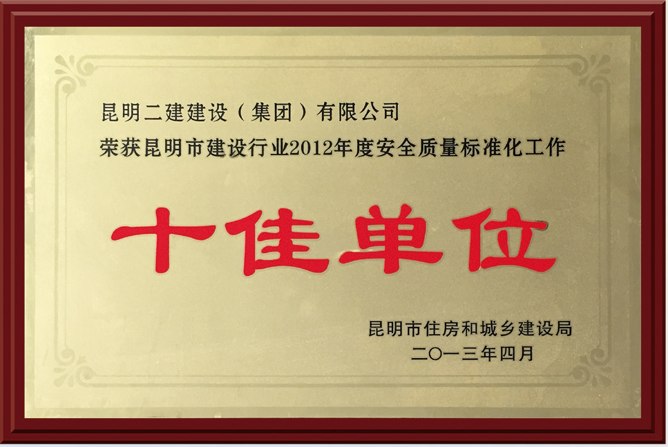 2012年度昆明市建設(shè)行業(yè)安全質(zhì)量標(biāo)準(zhǔn)化工作十佳單...